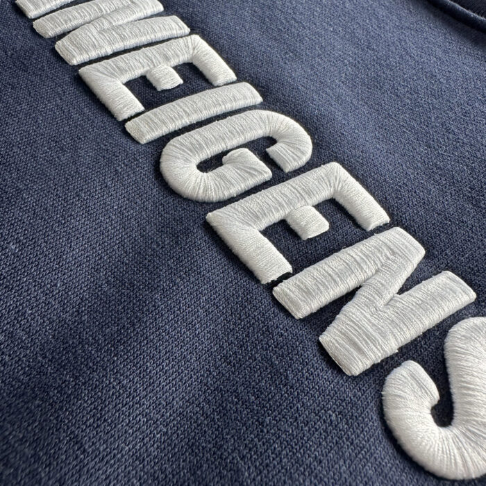 De kleding wordt zorgvuldig voorbereid: gespannen in een ring met vlies eronder, waarna de borduurmachine nauwkeurig het ontwerp aanbrengt. Denk aan logo’s, namen of andere merksymbolen op onder andere jassen, polo’s, petten of sweaters.